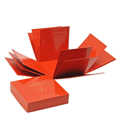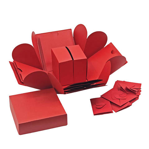 กล่องของขวัญอัลบั้มรูปงานแต่งงานสีแดงทำด้วยมือกล่องของขวัญสำหรับวันวาเลนไทน์ไฮเอนด์แบบสั่งทำบรรจุภัณฑ์เคลือบด้านการระเบิดแบบแปลกใจ