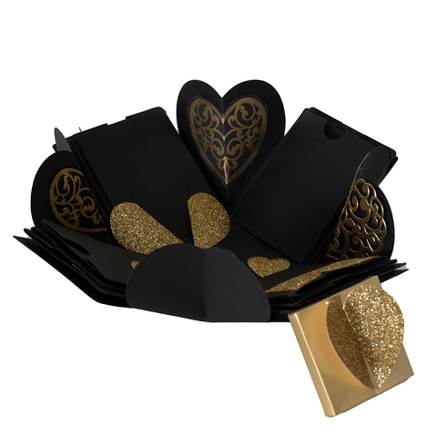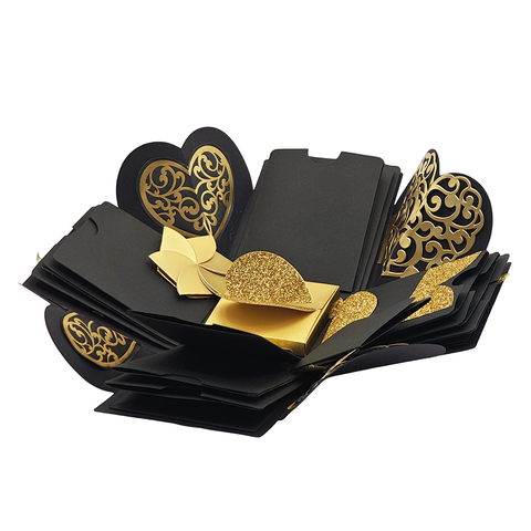 กล่องกระดาษงานฝีมือกระดาษแข็งสีดำปรับแต่งได้คุณภาพสูงกล่องของขวัญ DIY ระเบิดได้หลายชั้น